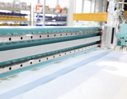 Quilting process for home textile products such as quilts, comforters, mattress, mattress protector, blanket, sleeping bag, single needle art quilts, etc.