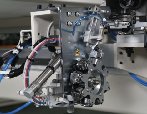 - GetonAgain quilting head, independent presser foot drive for various material thickness.